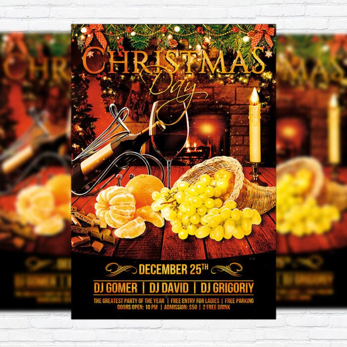 The Christmas Day is the exclusive Photoshop PSD flyer template designed by ExclusiveFlyer to promote your Christmas Party. This is a modern, stylish flyer and just be used for a Christmas Night or Christmas Party etc. Dear customers! – you can also: Customize any flyers or Hire Us to create any unique product. Also, you can get unlimited access to all our templates. You can buy 1 month membership, 3 or 6 months membership or even 1 year membership plan and login on site, choose a design, click the button DOWNLOAD TEMPLATE and it’s yours. No hassle, no checkout! When you paid the template, you can find it in your personal account and of course you’ve got a message to your e-mail (maybe in spam) with link to download. Also, you can find all templates, which you buy, in your personal account! All of our flyers have a very good quality (300DPI). And it means that you just need to download one of them and make the necessary modifications such as replace the elements or choose the colors and start to invite your guests! You can order from us design of Banner Ad, Bi-Fold Brochure, Tri-Fold Brochure, Business Card, Logo, One-Sided Flyer, Two-sided Flyer or Postcard. All you need is to checkout and write us all information on our e-mail or skype. (order now). There are a lot of free flyer templates, free business card templates on our site! Also there are a lot of categories of flyers such as club flyers, seasonal flyers, sport flyers and also business flyers. You have a great choise on our site, so good luck! Don’t forget to follow our Facebook community, our page on Twitter, on Pinterest and on Tumblr and leave comments, cause we work for you! PSD is set up in 1275×1875 dimension (4” x 6” with 0,25” bleed). The PSD file is very well organised, with color coded groups and layers named appropriately. Remember, all stock images of models and other people used only for demonstration all charms of the flyer and don’t included in the download!