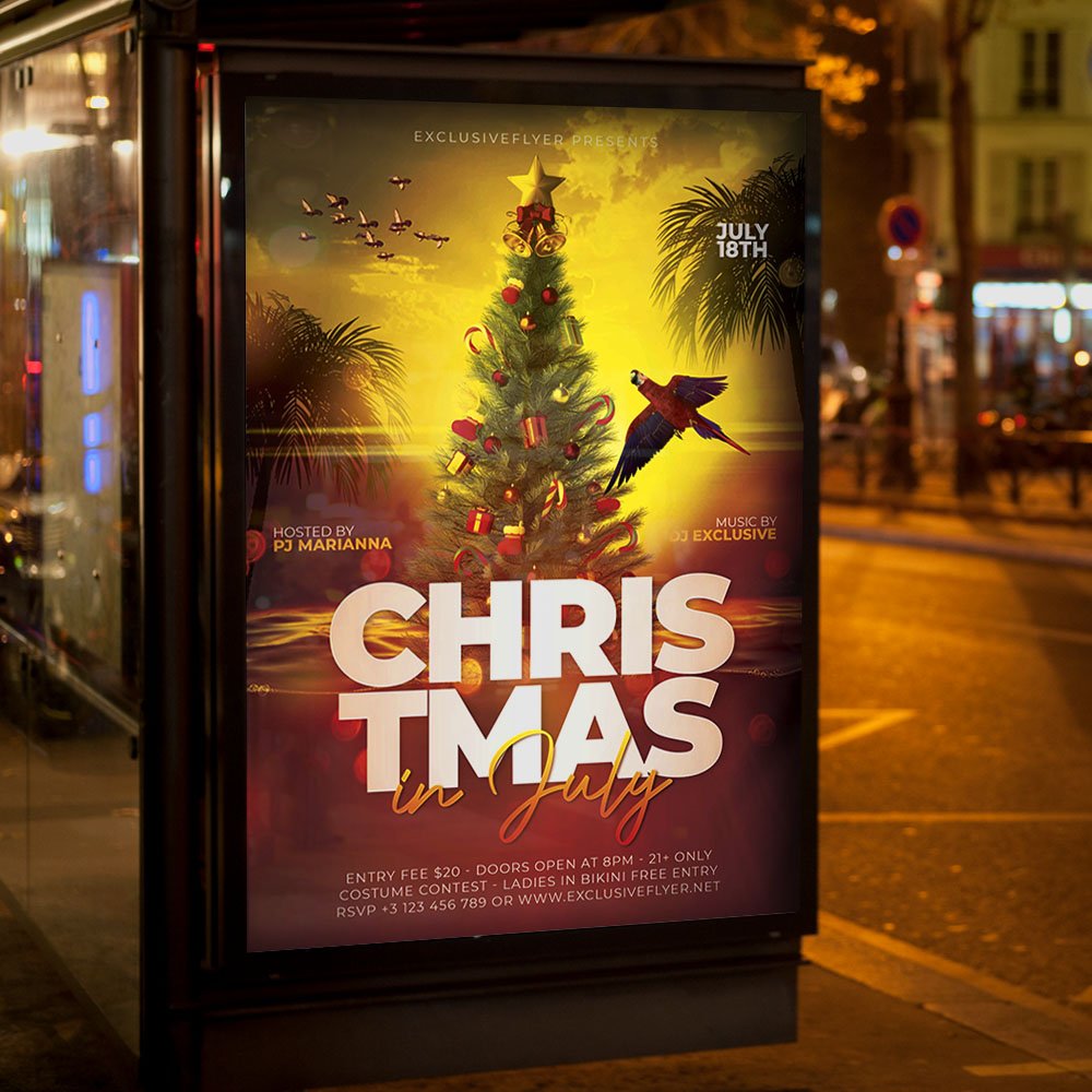 Christmas in July Event Flyer PSD TemplateBring the magic of the North Pole to the peak of summer with the Christmas in July Event Flyer PSD Template. In 2026, themed summer parties are taking the social calendar by storm, and nothing beats the ironic charm of a “winter wonderland” in 100-degree weather. This professional Photoshop template is expertly crafted to balance refreshing summer vibes with classic holiday iconography, featuring sun-drenched snowflakes, sandy Christmas trees, and a cool, high-end color palette that demands attention. The Christmas in July Event Flyer PSD Template is a versatile asset for event coordinators, hospitality managers, and corporate planners. This fully layered PSD file is built for speed and precision, allowing you to customize your 2026 event details in minutes. Use the smart object layers to update your “Frozen Summer” drink specials, pool-side Santa appearances, or mid-year charity auction details. With a high-resolution 300 DPI output, your marketing materials will look flawlessly professional, whether they are printed on premium cardstock or displayed on massive venue screens. Optimized for the digital-heavy landscape of 2026, this template is 100% print-ready and perfectly scaled for viral engagement on Instagram, Facebook, and TikTok. By choosing this polished design, you are signaling to your guests that your event is a high-status, well-organized celebration. Don’t let your promotion get lost in the usual summer clutter—give it a holiday twist that guarantees a packed house. Download the Christmas in July Event Flyer PSD Template today and let the 2026 summer festivities begin! — Features of the Christmas in July Event Flyer PSD Template