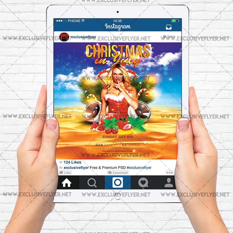 The Christmas in July is the exclusive Photoshop PSD flyer template designed by ExclusiveFlyer to promote your Christmas in July. This is a modern, stylish flyer and just be used for a Summer Party, Summer Christmas Party, Christmas Beach Party etc.