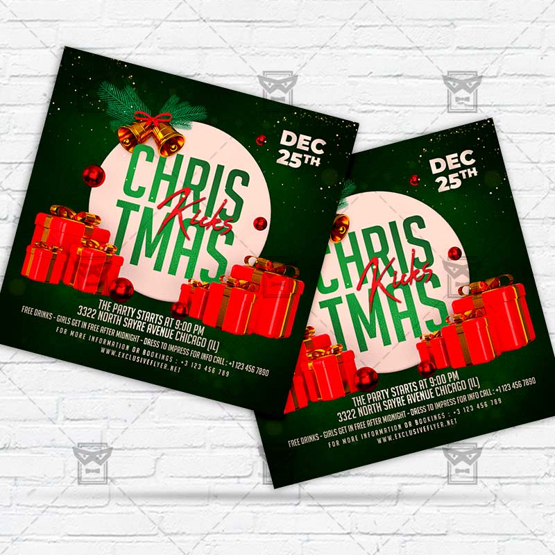 Christmas Kicks Template an exclusive PSD flyer template for Adobe Photoshop designed by our best graphic designers to facilitate your task in promoting your business. With our readymade Club flyer in psd format you can invite you customers and guest to your event or to the best Christmas Celebration, Christmas Party, Merry Christmas, Winter Wonderland, Christmas Vacation, Christmas Market, Christmas Menu, Xmas Menu Set, New Year Menu in their lives.