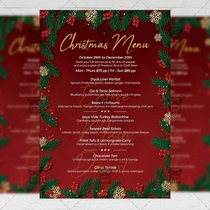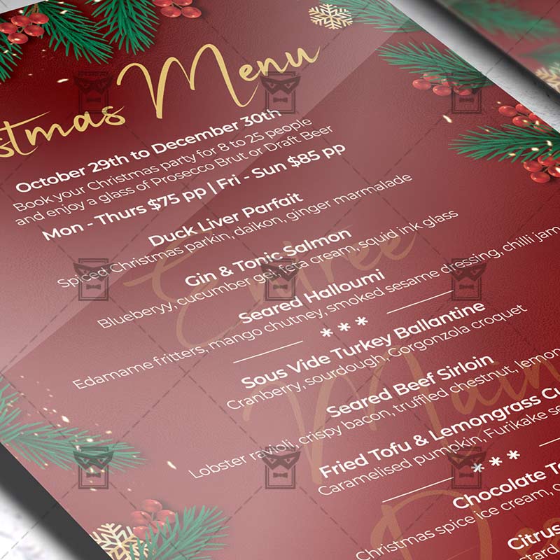Christmas Menu Set Template an exclusive PSD flyer template for Adobe Photoshop designed by our best graphic designers to facilitate your task in promoting your business. With our readymade Club flyer in psd format you can invite you customers and guest to your event or to the best Christmas Celebration, Christmas 2020 Party, Merry Christmas, Winter Wonderland, Christmas Vacation, Christmas Market, Christmas Menu, Xmas Menu Set, New Year Menu in their lives.