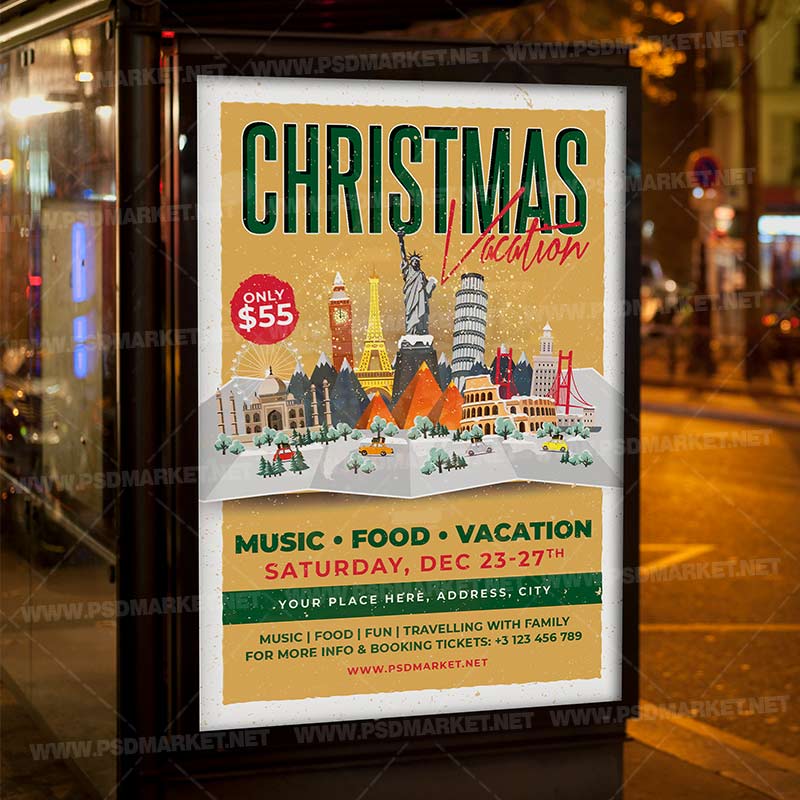 Christmas Vacation Flyer PSD Template for Adobe Photoshop