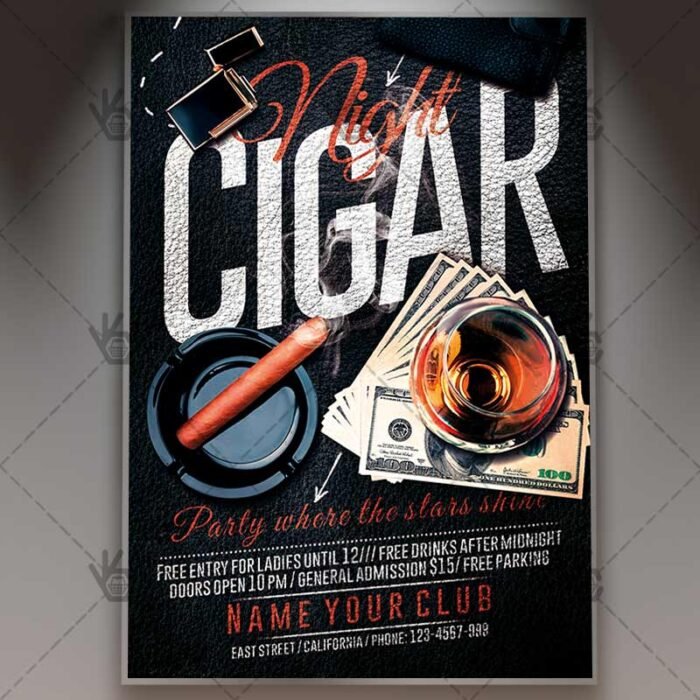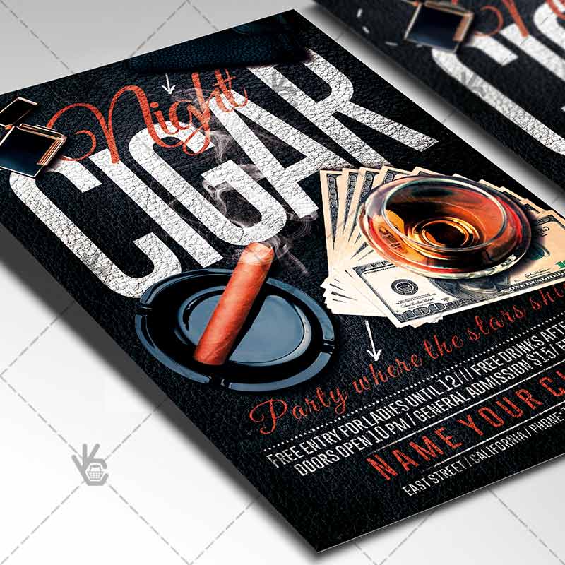 Cigar Night is a simply modern flyer design by PSDmarket Team to be used with Photoshop CS3 and higher. Save your time and use it for business or for your clients! This can be use for Cigar Event, Cigar Party, Lounge Party, Lounge Night, Cigar Lounge, VIP Party, VIP Birthday, Whiskey Night, Whiskey Party, Smoke Night and others.