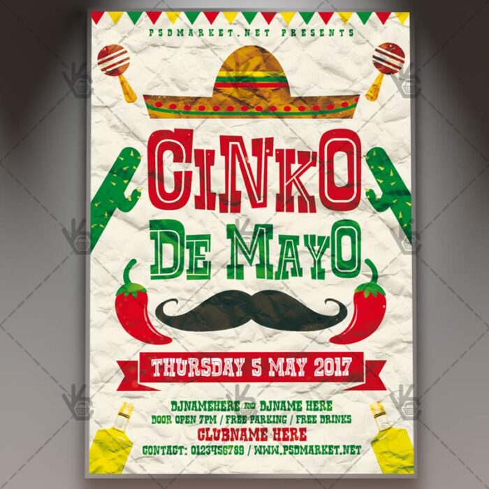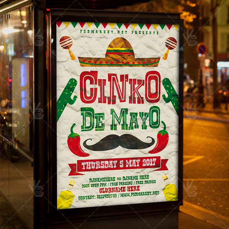 Cinco De Mayo Carnival is a simply modern flyer design by PSDmarket Team to be used with Photoshop CS3 and higher. Save your time and use it for business or for your clients! This can be use for Cinco De Mayo Night, Cinco De Mayo Carnival, 2017 Cinco De Mayo, Cinco De Mayo Party, Cinco De Mayo Fiesta, Cinco De Mayo Day or Cinco De Mayo Event and others.