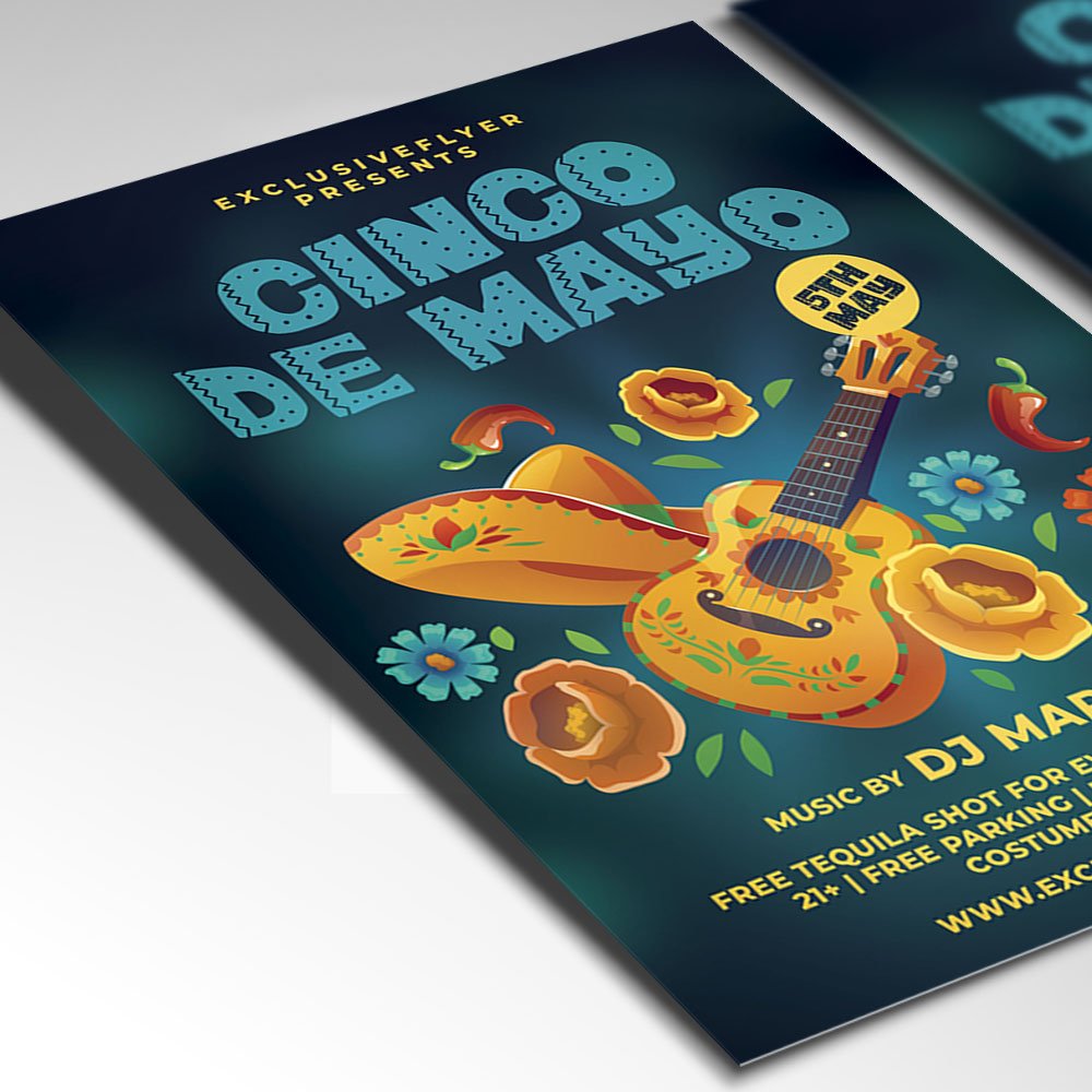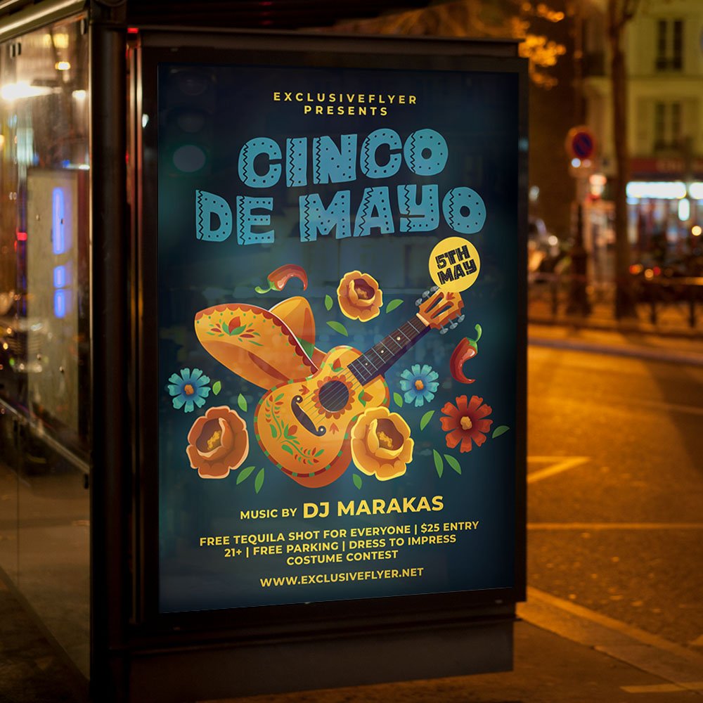 Cinco de Mayo Event Flyer PSD TemplateIgnite the festive spirit and turn up the heat with the Cinco de Mayo Event Flyer PSD Template. As May 2026 approaches, the world is ready to celebrate Mexican heritage with more energy than ever. This professional Photoshop template is your ticket to a packed house, featuring vibrant traditional colors, high-definition tequila and lime imagery, and festive papel picado elements that scream “Fiesta!” Whether you’re promoting a boutique tequila tasting, a high-energy street festival, or a local restaurant’s taco takeover, this design captures the authentic joy of the holiday. The Cinco de Mayo Event Flyer PSD Template is a powerhouse for promoters who value both style and efficiency. The PSD file is meticulously organized with labeled layers, allowing you to customize everything from the background textures to the glowing lighting effects. Use the integrated smart objects to effortlessly update your 2026 event details, guest DJ names, or special menu highlights like “2026 Signature Margaritas” or “VIP Fiesta Packages.” With its 300 DPI high-resolution quality, your marketing materials will look stunningly sharp, ensuring your brand stands out in the 2026 market. In the digital-first landscape of 2026, versatility is key. This template is 100% print-ready for high-quality posters and is perfectly scaled for viral social media engagement. Create high-impact Instagram Stories, TikTok event teasers, and Facebook covers with just a few clicks. By choosing this polished and professional design, you are inviting your guests to a premier, high-production experience. Download the Cinco de Mayo Event Flyer PSD Template today and let the fiesta begin! — Features of the Cinco de Mayo Event Flyer PSD Template