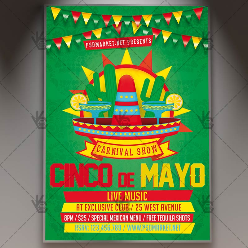 Cinco de Mayo Night is a simply modern flyer design by PSDmarket Team to be used with Photoshop CS3 and higher. Save your time and use it for business or for your clients! This can be use for Cinco De Mayo Night, Cinco De Mayo Carnival, 2017 Cinco De Mayo, Cinco De Mayo Party, Cinco De Mayo Fiesta, Cinco De Mayo Day or Cinco De Mayo Event and others.