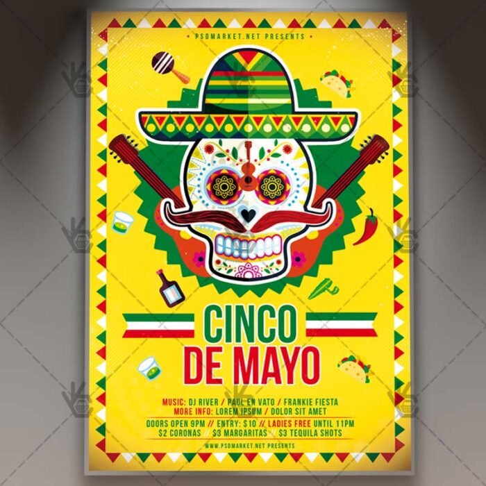 Cinco De Mayo Party is a simply modern flyer design by PSDmarket Team to be used with Photoshop CS3 and higher. Save your time and use it for business or for your clients! This can be use for Cinco De Mayo Night, Cinco De Mayo Carnival, 2017 Cinco De Mayo, Cinco De Mayo Party, Cinco De Mayo Fiesta, Cinco De Mayo Day or Cinco De Mayo Event and others.
