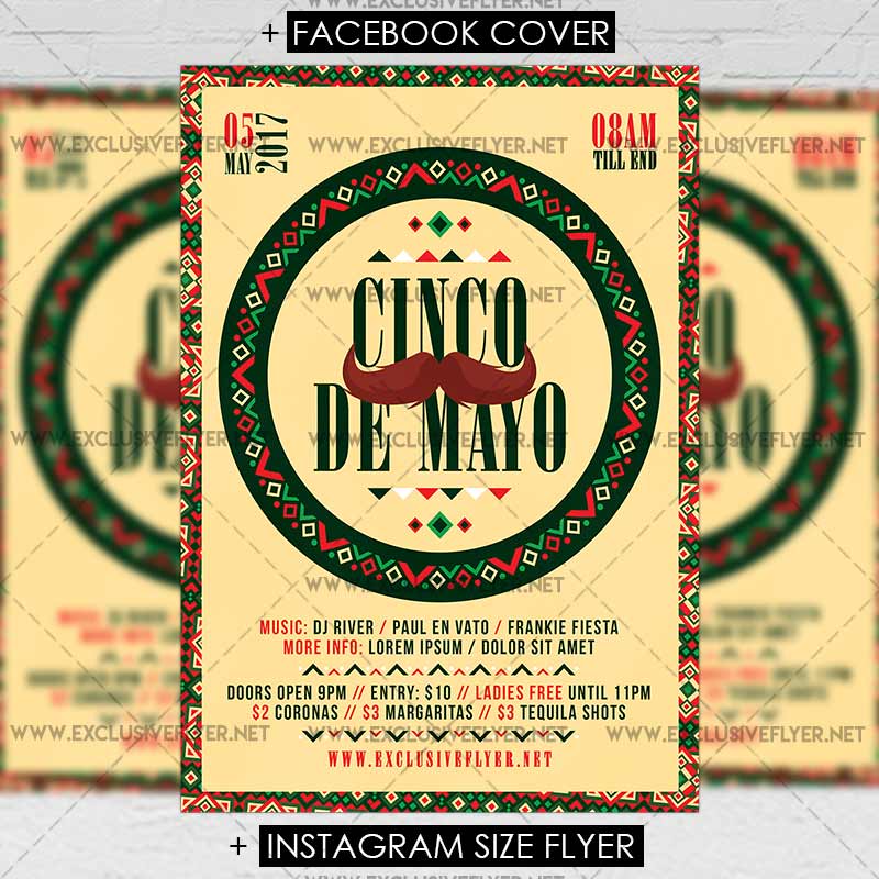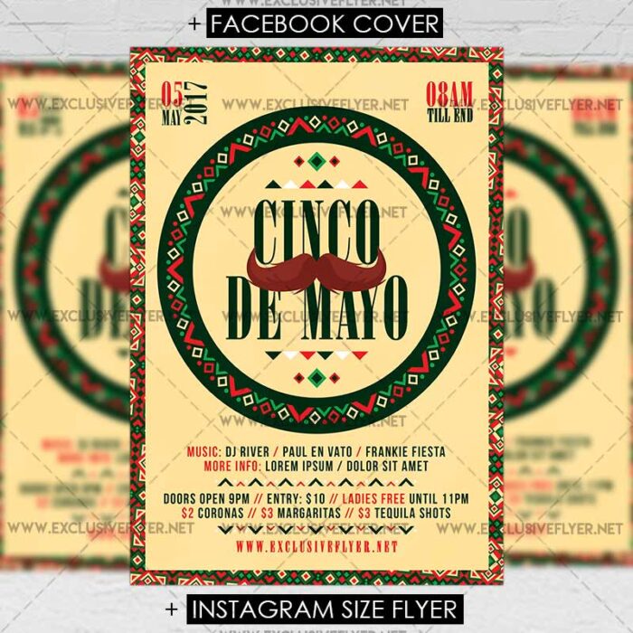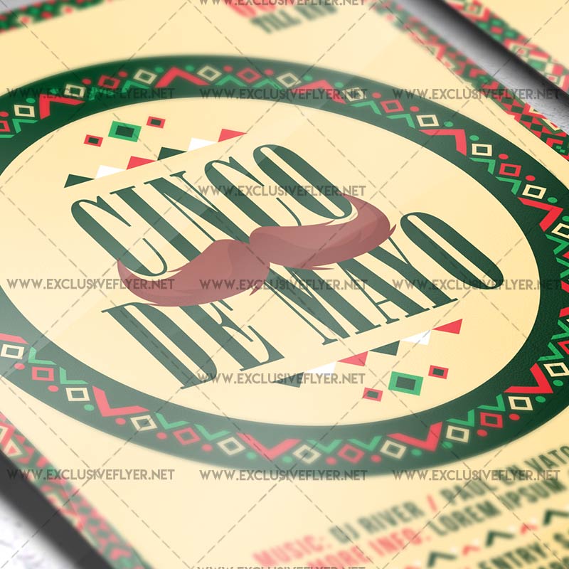 The Cinco De Mayo is the exclusive Photoshop PSD flyer template designed by ExclusiveFlyer to promote your Cinco De Mayo Party. This is a modern, stylish flyer and just be used for a Drinko De Mayo, Cinco De Drinko Night, Mexican Independence Day etc.