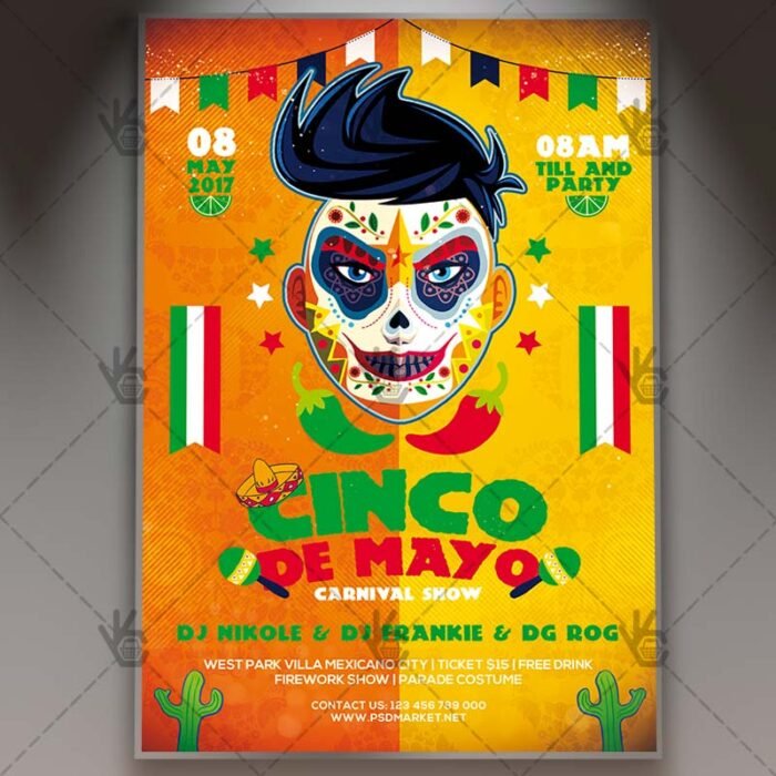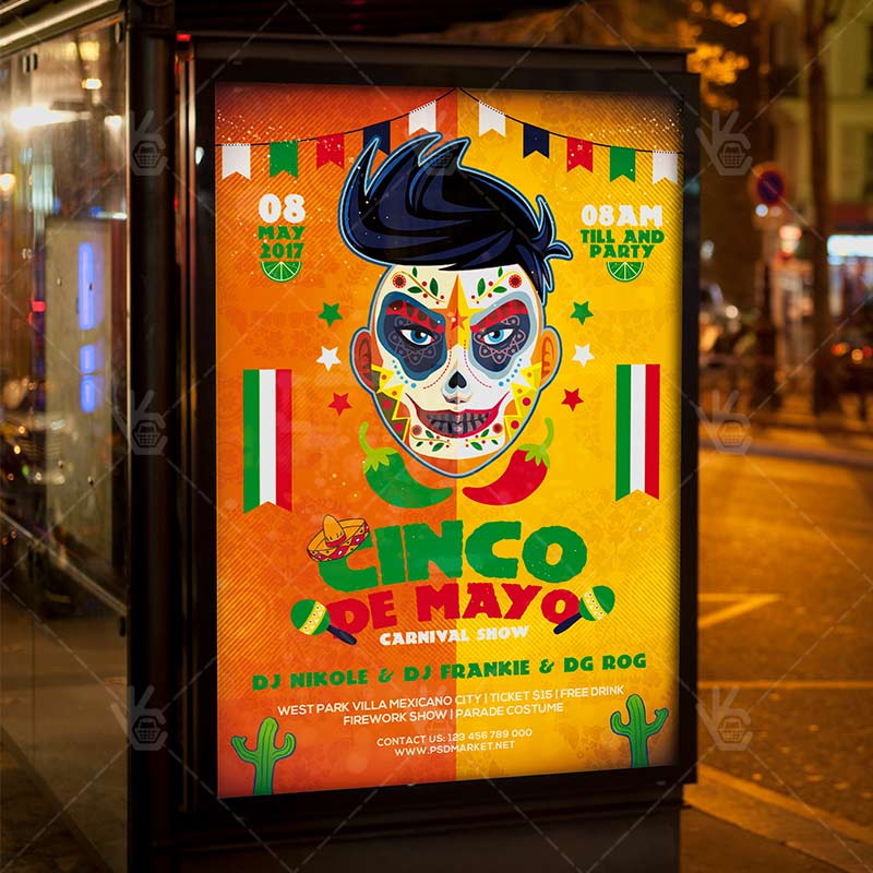 Cinco De Mayo is a simply modern flyer design by PSDmarket Team to be used with Photoshop CS3 and higher. Save your time and use it for business or for your clients! This can be use for Cinco De Mayo Night, Cinco De Mayo Carnival, 2017 Cinco De Mayo, Cinco De Mayo Party, Cinco De Mayo Fiesta, Cinco De Mayo Day or Cinco De Mayo Event and others.