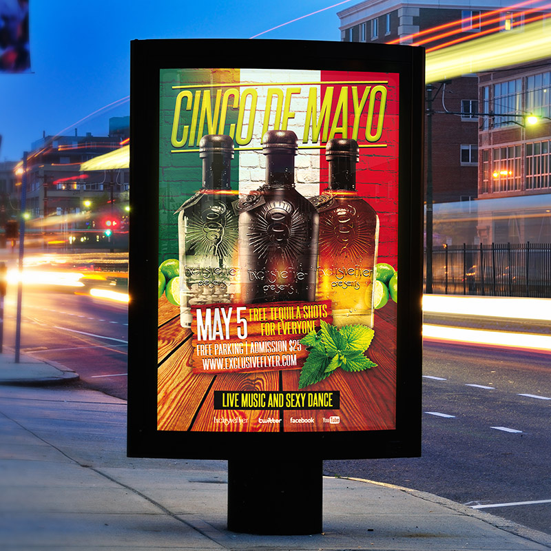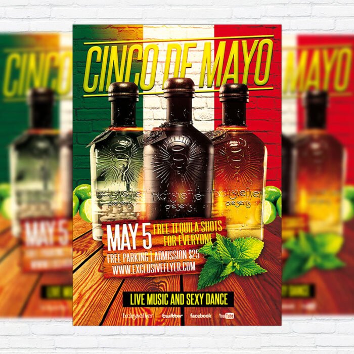 The Cinco de Mayo is the exclusive Photoshop PSD flyer template designed by ExclusiveFlyer to promote your Cinco de Mayo Party. This is a modern, stylish flyer and just be used for a Mexico Independence Day or Latin Night Party. Dear customers! – you can also: Customize any flyers or Hire Us to create any unique product. Also, you can get unlimited access to all our templates. You can buy 1 month membership, 3 or 6 months membership or even 1 year membership plan and login on site, choose a design, click the button DOWNLOAD TEMPLATE and it’s yours. No hassle, no checkout! When you paid the template, you can find it in your personal account and of course you’ve got a message to your e-mail (maybe in spam) with link to download. Also, you can find all templates, which you buy, in your personal account! All of our flyers have a very good quality (300DPI). And it means that you just need to download one of them and make the necessary modifications such as replace the elements or choose the colors and start to invite your guests! You can order from us design of Banner Ad, Bi-Fold Brochure, Tri-Fold Brochure, Business Card, Logo, One-Sided Flyer, Two-sided Flyer or Postcard. All you need is to checkout and write us all information on our e-mail or skype. (order now). There are a lot of free flyer templates, free business card templates on our site! Also there are a lot of categories of flyers such as club flyers, seasonal flyers, sport flyers and also business flyers. You have a great choise on our site, so good luck! Don’t forget to follow our Facebook community, our page on Twitter, on Pinterest and on Tumblr and leave comments, cause we work for you! PSD is set up in 1275×1875 dimension (4″×6″ with 0,25″ bleed). The PSD file is very well organised, with color coded groups and layers named appropriately. Remember, all stock images of models and other people used only for demonstration all charms of the flyer and don’t included in the download!