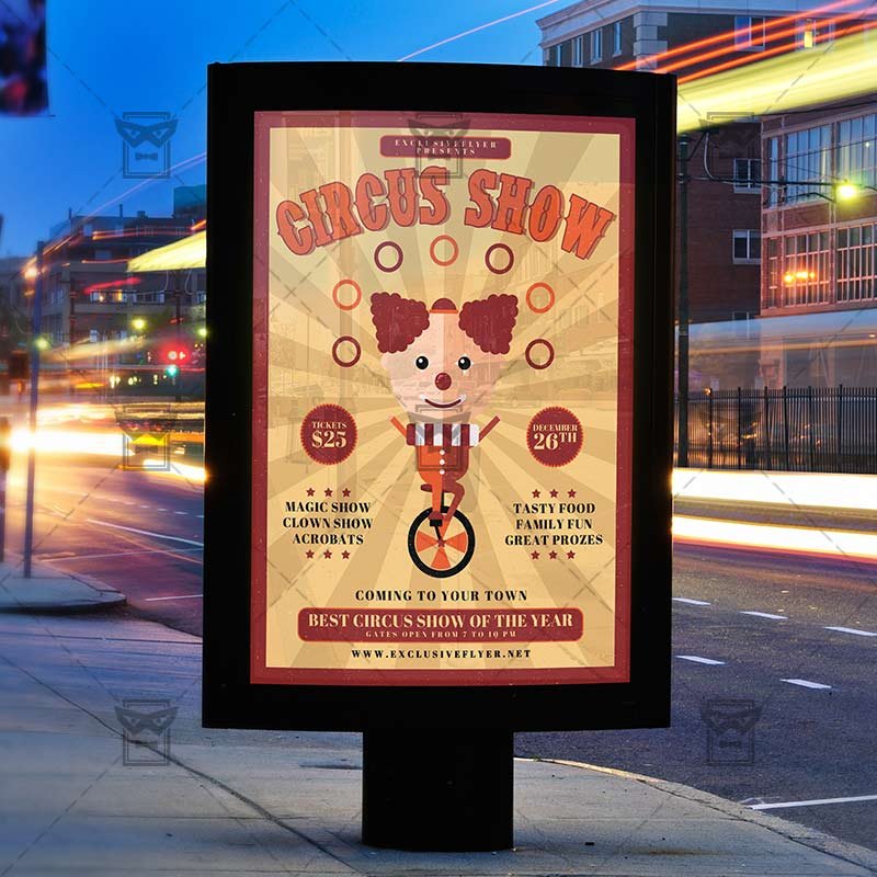 The Circus Show is the exclusive Photoshop PSD flyer template designed by ExclusiveFlyer to promote your Circus Show. This is a modern, stylish flyer and just be used for Circus Show Night, Carnival Night, Carnival Show, Clowns Snow etc.