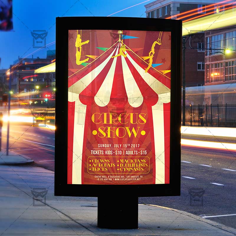 The Circus Show Night is the exclusive Photoshop PSD flyer template designed by ExclusiveFlyer to promote your Circus Show. This is a modern, stylish flyer and just be used for Circus Night, Circus Show, Magis Show etc.