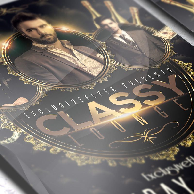 The Classy Lounge Party is the exclusive Photoshop PSD flyer template designed by ExclusiveFlyer to promote your Classy Lounge Party. This is a modern, stylish flyer and just be used for a Classy Lounge Night or Lounge Party, or Classy Party. Dear customers! – you can also: Customize any flyers or Hire Us to create any unique product. Also, you can get unlimited access to all our templates. You can buy 1 month membership, 3 or 6 months membership or even 1 year membership plan and login on site, choose a design, click the button DOWNLOAD TEMPLATE and it’s yours. No hassle, no checkout! When you paid the template, you can find it in your personal account and of course you’ve got a message to your e-mail (maybe in spam) with link to download. Also, you can find all templates, which you buy, in your personal account! All of our flyers have a very good quality (300DPI). And it means that you just need to download one of them and make the necessary modifications such as replace the elements or choose the colors and start to invite your guests! You can order from us design of Banner Ad, Bi-Fold Brochure, Tri-Fold Brochure, Business Card, Logo, One-Sided Flyer, Two-sided Flyer or Postcard. All you need is to checkout and write us all information on our e-mail or skype. (order now). There are a lot of free flyer templates, free business card templates on our site! Also there are a lot of categories of flyers such as club flyers, seasonal flyers, sport flyers and also business flyers. You have a great choise on our site, so good luck! Don’t forget to follow our Facebook community, our page on Twitter, on Pinterest and on Tumblr and leave comments, cause we work for you! PSD is set up in 1275×1875 dimension (4″×6″ with 0,25″ bleed). The PSD file is very well organised, with color coded groups and layers named appropriately. Remember, all stock images of models and other people used only for demonstration all charms of the flyer and don’t included in the download!