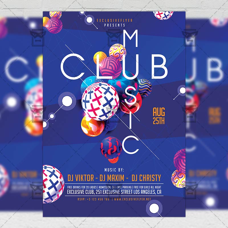 Club Music Night is an exclusive PSD flyer template for Adobe Photoshop designed by our best graphic designers to facilitate your task in promoting your business. With our readymade Club flyer in psd format you can invite you customers and guest to your event or to the best Club Party Night, Best Night, Mix Party Night or Club Music Party in their lives.