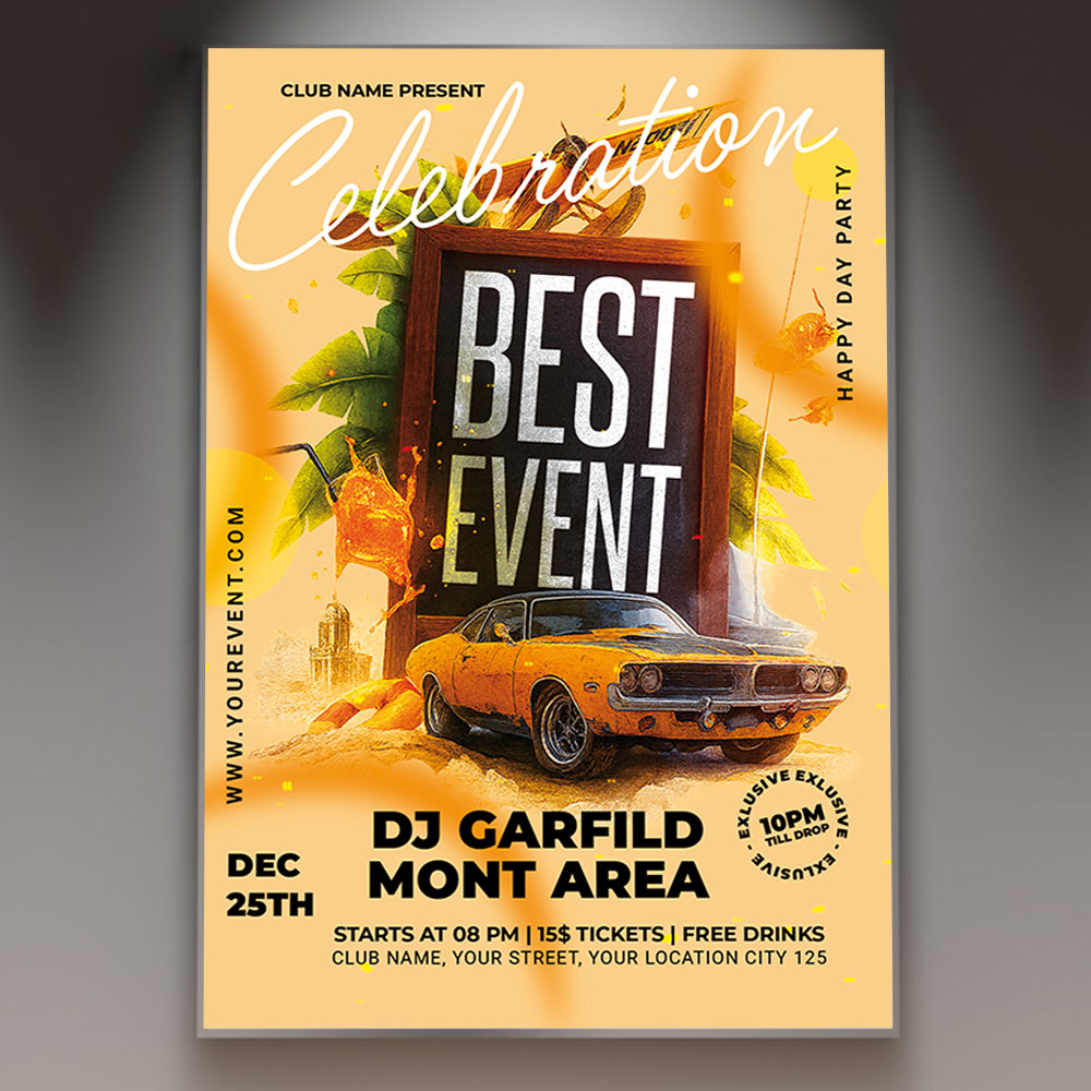 Club Party Flyer TemplateIgnite the dance floor with our pulsating **Club Party Flyer Template**! This dynamic and electrifying design is perfect for promoting club nights, bar events, DJ performances, or any gathering that comes alive after dark. If you’re looking to create an irresistible invitation that screams “**dance all night**,” “**epic beats**,” and “**the party starts now**,” this flyer template is engineered to draw a massive and enthusiastic crowd. Expect to see striking visuals, often incorporating energetic elements like neon lights, glowing effects, silhouetted crowds, and a bold, modern typography that captures the high-energy and exhilarating spirit of the nightlife. This template is all about setting a vibrant and thrilling mood, making your “**Club Party**” the ultimate destination for an unforgettable experience! The **Club Party Flyer Template** offers a highly adaptable and professional layout, ensuring you can clearly communicate all the essential details of your event while perfectly maintaining its exciting and inviting spirit. You can easily customize the text fields to include the specific date and time of your party, the pulsating venue location, any special entry requirements or ticket tiers, and information about featured DJs, drink specials, or a “**book now**” call-to-action, all presented in a clear and appealing way. Add an enticing description of what attendees can expect, perhaps highlighting opportunities for a special **VIP experience**, a themed dress code, or simply dancing until dawn in a high-energy and inviting atmosphere. Detail any exciting features like a designated VIP area with a special drink menu, a special prize for the best dancer, or a thrilling light show. And of course, include clear contact information or prominent social media handles for further engagement and ticket sales. Many templates also provide exciting options to incorporate additional dynamic graphics like light flares, abstract patterns, or glowing geometric shapes, or to adjust the impactful color palette (often electric blues, magentas, and deep blacks) to perfectly match your brand’s aesthetic or the event’s specific vibe. This lets you create a truly unique and memorable promotional piece that looks as vibrant and exciting as your event feels. Engineered for maximum reach, the **Club Party Flyer Template** is designed to be both print-ready for stunning physical distribution and seamlessly optimized for digital sharing. This ensures your exciting invitation reaches a wide and enthusiastic audience. Create eye-catching physical flyers to distribute at clubs, bars, cafes, or through local event groups. Effortlessly share the flyer digitally through various social media channels with engaging captions that highlight the night’s energetic vibe, email announcements that build anticipation, and online event listings that attract music lovers, party-goers, and anyone looking for a night of classic enjoyment. This dual functionality helps to maximize visibility and create significant buzz around your Club Party. By utilizing this distinctive and attention-grabbing flyer template, you’re not just announcing a party; you’re creating an invitation that broadcasts pure authentic fun and promises an experience filled with great music, great company, and unforgettable memories, making your “**Club Party**” the ultimate destination for an epic gathering. Grab this template today and get ready to light up the night! — Features of the Club Party Flyer Template