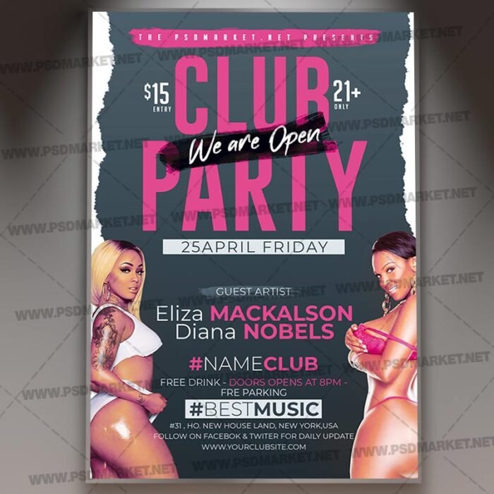Club Party Template Flyer PSD is a simply modern flyer design by PSDmarket Team to be used with Adobe Photoshop CS3 and higher. Save your time and use it for business or for your clients! This can be use for Club Party, Online Party, Online Stream Party, Live Party, House Party, Home Night, Party Night, Rave Club Party, Rave Dj, Dj Battle and others.