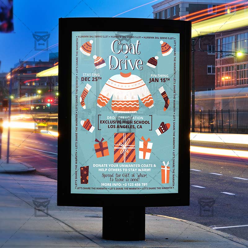 Coat Drive Event is an exclusive PSD flyer template for Adobe Photoshop designed by our best graphic designers to facilitate your task in promoting your business. With our readymade Coat Drive flyer in psd format you can invite you customers and guest to your event or to the best Coat Drive, Winter Coat Drive, Charity Event or Kid’s Coat Drive in their lives.