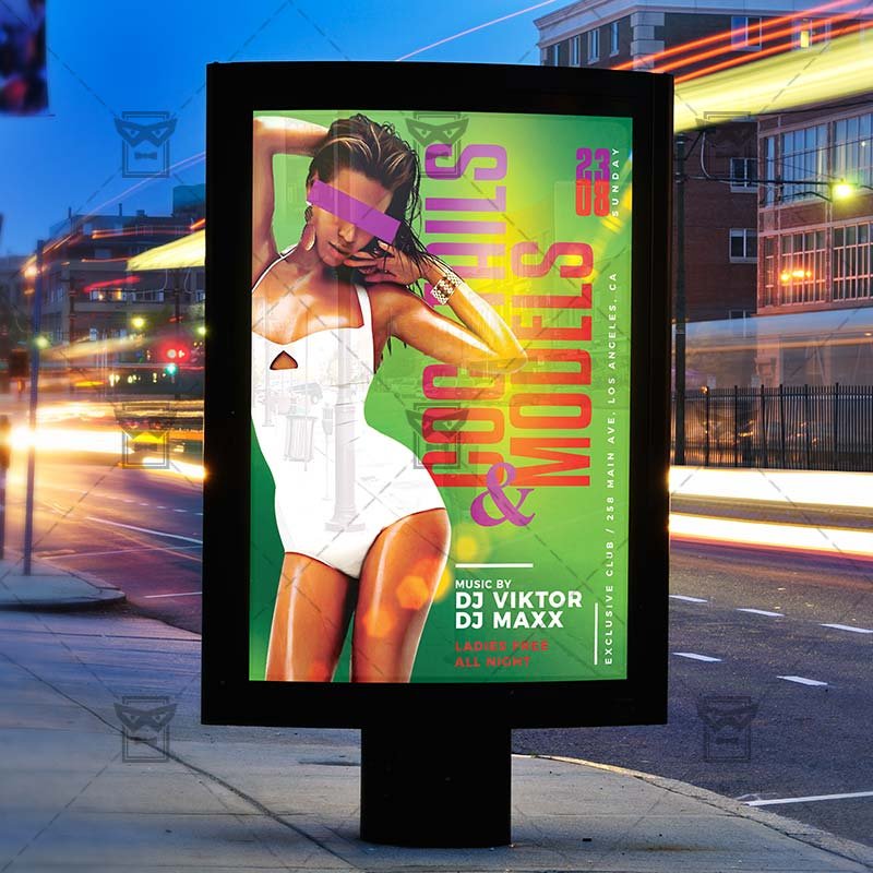 Cocktails and Models an exclusive PSD flyer template for Adobe Photoshop designed by our best graphic designers to facilitate your task in promoting your business. With our readymade Club flyer in psd format you can invite you customers and guest to your event or to the best Models Party, Models and Bottles Night, Cocktails Party, Club PartyNight or Drink Bash Party in their lives.