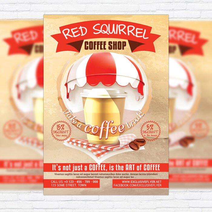 The Coffee Shop is the exclusive Photoshop PSD flyer template designed by ExclusiveFlyer to promote your Coffee Shop. This is a modern, stylish flyer and just be used for a Coffee Shop or Coffee House etc. Dear customers! – you can also: Customize any flyers or Hire Us to create any unique product. Also, you can get unlimited access to all our templates. You can buy 1 month membership, 3 or 6 months membership or even 1 year membership plan and login on site, choose a design, click the button DOWNLOAD TEMPLATE and it’s yours. No hassle, no checkout! When you paid the template, you can find it in your personal account and of course you’ve got a message to your e-mail (maybe in spam) with link to download. Also, you can find all templates, which you buy, in your personal account! All of our flyers have a very good quality (300DPI). And it means that you just need to download one of them and make the necessary modifications such as replace the elements or choose the colors and start to invite your guests! You can order from us design of Banner Ad, Bi-Fold Brochure, Tri-Fold Brochure, Business Card, Logo, One-Sided Flyer, Two-sided Flyer or Postcard. All you need is to checkout and write us all information on our e-mail or skype. (order now). There are a lot of free flyer templates, free business card templates on our site! Also there are a lot of categories of flyers such as club flyers, seasonal flyers, sport flyers and also business flyers. You have a great choise on our site, so good luck! Don’t forget to follow our Facebook community, our page on Twitter, on Pinterest and on Tumblr and leave comments, cause we work for you! PSD is set up in 1275×1875 dimension (4” x 6” with 0,25” bleed). The PSD file is very well organised, with color coded groups and layers named appropriately. Remember, all stock images of models and other people used only for demonstration all charms of the flyer and don’t included in the download!
