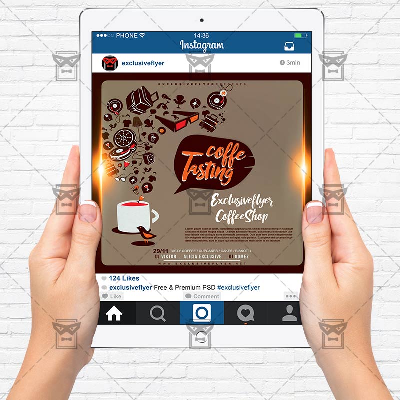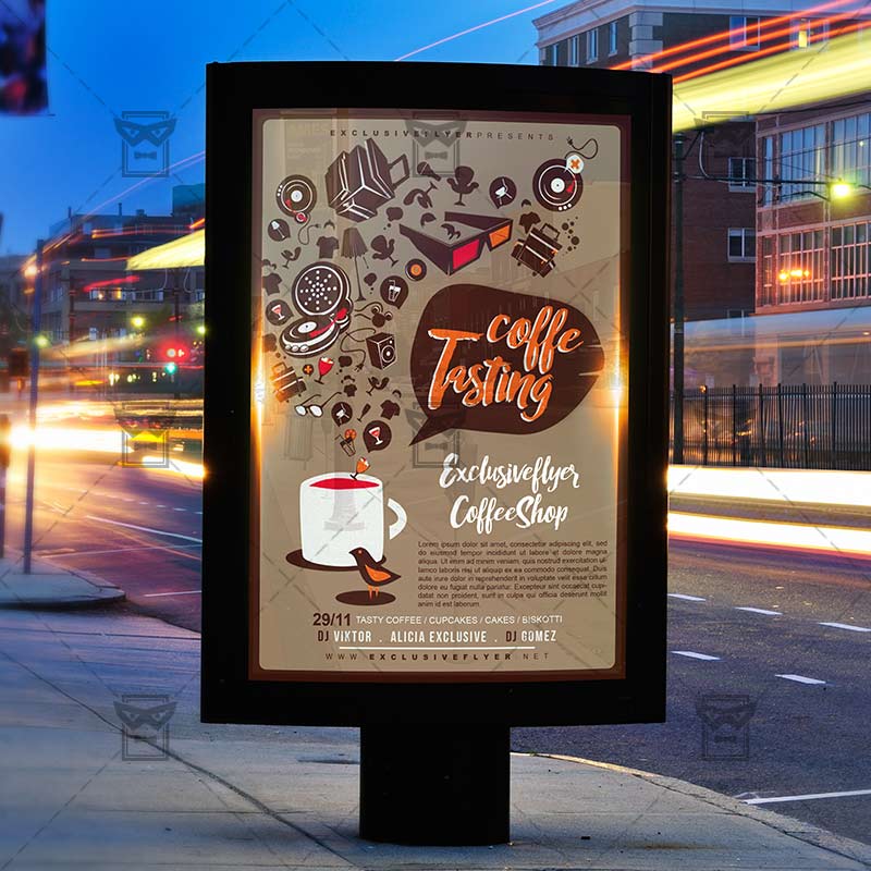 The Coffee Tasting is the exclusive Photoshop PSD flyer template designed by ExclusiveFlyer to promote your Coffee Tasting Party. This is a modern, stylish flyer and just be used for a Coffee Shop, Coffee Bar, Coffee Festival etc. Dear customers! – you can also: Customize any flyers or Hire Us to create any unique product. Also, you can get unlimited access to all our templates. You can buy 1 month membership, 3 or 6 months membership or even 1 year membership plan and login on site, choose a design, click the button DOWNLOAD TEMPLATE and it’s yours. No hassle, no checkout! When you paid the template, you can find it in your personal account and of course you’ve got a message to your e-mail (maybe in spam) with link to download. Also, you can find all templates, which you buy, in your personal account! All of our flyers have a very good quality (300DPI). And it means that you just need to download one of them and make the necessary modifications such as replace the elements or choose the colors and start to invite your guests! You can order from us design of Banner Ad, Bi-Fold Brochure, Tri-Fold Brochure, Business Card, Logo, One-Sided Flyer, Two-sided Flyer or Postcard. All you need is to checkout and write us all information on our e-mail or skype. (order now). There are a lot of free flyer templates, free business card templates on our site! Also there are a lot of categories of flyers such as club flyers, seasonal flyers, sport flyers and also business flyers. You have a great choise on our site, so good luck! Don’t forget to follow our Facebook community, our page on Twitter, on Pinterest and on Tumblr and leave comments, cause we work for you! PSD is set up in 1275×1875 dimension (4” x 6” with 0,25” bleed). The PSD file is very well organised, with color coded groups and layers named appropriately. Remember, all stock images of models and other people used only for demonstration all charms of the flyer and don’t included in the download!