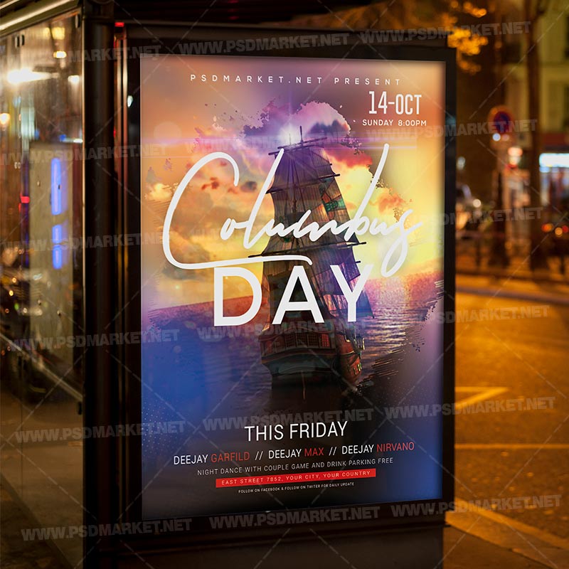 Columbus Day Event Flyer is a simply modern flyer design by PSDmarket Team to be used with Photoshop CS3 and higher. Save your time and use it for business or for your clients! This can be use for Columbus Day Event, Columbus Day, Columbus Day Celebration, Columbus Day Party, Columbus Day Night, Columbus Day BBQ, Columbus Night and others.