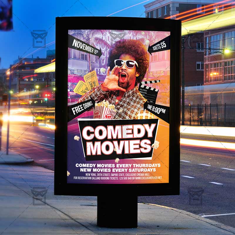 The Comedy Movies is the exclusive Photoshop PSD flyer/poster template designed by ExclusiveFlyer to promote your Comedy Movies Night. This is a modern, stylish flyer and just be used for Movies Night, Film Festival, Cinema Promotion etc.
