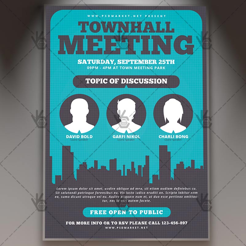 Community Meeting is a simply modern flyer design by PSDmarket Team to be used with Photoshop CS3 and higher. Save your time and use it for business or for your clients! This can be use for Town Hall Meeting, Seminar, Meeting, Forum, Webinar or Workshop and others.
