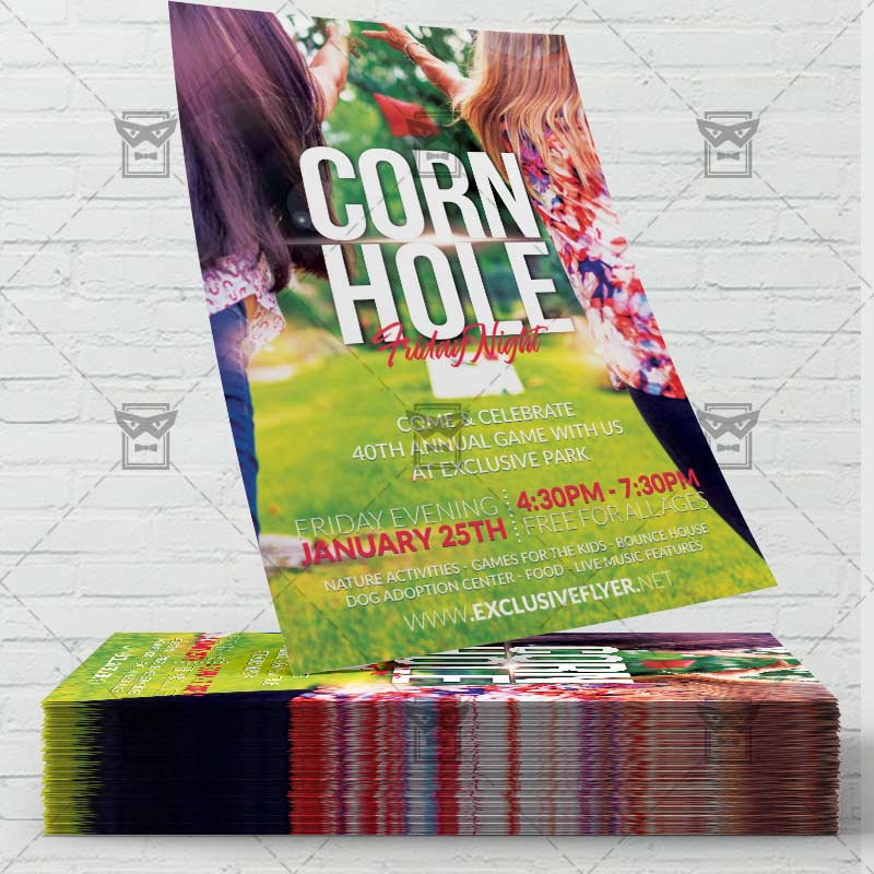 Cornhole Friday Night A5 Flyer PSD Template for Adobe Photoshop