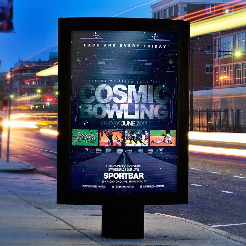 Cosmic Bowling – Premium Flyer Template + Facebook Cover