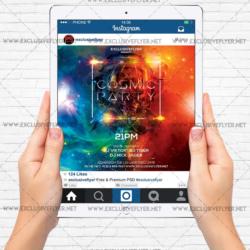 The Cosmic Party is the exclusive Photoshop PSD flyer template designed by ExclusiveFlyer to promote your Cosmic Party. This is a modern, stylish flyer and just be used for a Electro Night, Minimal Party etc.