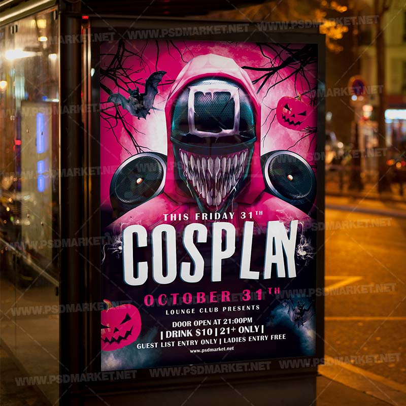 Cosplay Halloween Template Flyer PSD for Adobe Photoshop