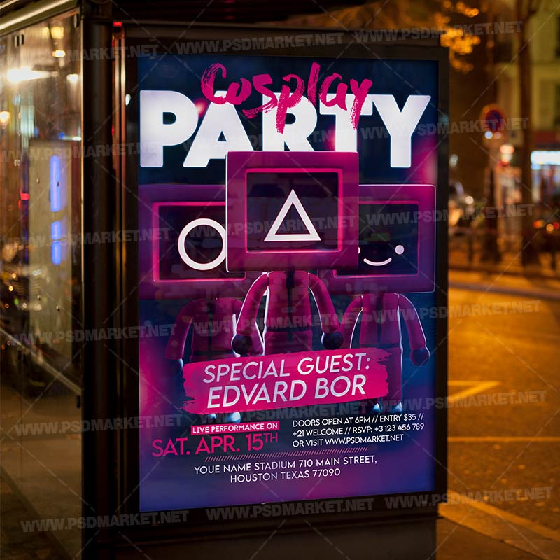 Cosplay Night Template Flyer PSD for Adobe Photoshop