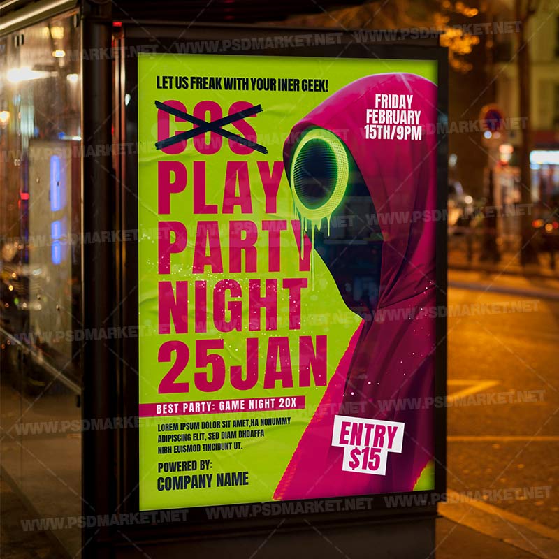 Cosplay Party Card Printable Template Flyer PSD for Adobe Photoshop