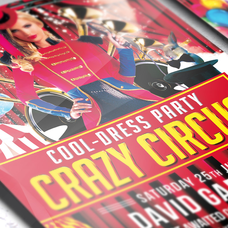 The Crazy Circus is the exclusive Photoshop PSD flyer/poster template designed by ExclusiveFlyer to promote your Crazy Circus. This is a modern, stylish, red flyer and just be used for a Crazy Circus Party, Carnival Party, VIP Party or Circus Night. Dear customers! – you can also: Customize any flyers or Hire Us to create any unique product. Also, you can get unlimited access to all our templates. You can buy 1 month membership, 3 or 6 months membership or even 1 year membership plan and login on site, choose a design, click the button DOWNLOAD TEMPLATE and it’s yours. No hassle, no checkout! When you paid the template, you can find it in your personal account and of course you’ve got a message to your e-mail (maybe in spam) with link to download. Also, you can find all templates, which you buy, in your personal account! All of our flyers have a very good quality (300DPI). And it means that you just need to download one of them and make the necessary modifications such as replace the elements or choose the colors and start to invite your guests! You can order from us design of Banner Ad, Bi-Fold Brochure, Tri-Fold Brochure, Business Card, Logo, One-Sided Flyer, Two-sided Flyer or Postcard. All you need is to checkout and write us all information on our e-mail or skype. (order now). There are a lot of free flyer templates, free business card templates on our site! Also there are a lot of categories of flyers such as club flyers, seasonal flyers, sport flyers and also business flyers. You have a great choise on our site, so good luck! Don’t forget to follow our Facebook community, our page on Twitter, on Pinterest and on Tumblr and leave comments, cause we work for you! PSD is set up in 1275×1875 dimension (4″×6″ with 0,25″ bleed). The PSD file is very well organised, with color coded groups and layers named appropriately. Remember, all stock images of models and other people used only for demonstration all charms of the flyer and don’t included in the download!