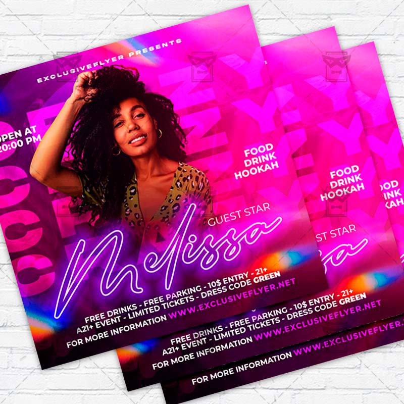 Crazy Party Template an exclusive PSD flyer template for Adobe Photoshop designed by our best graphic designers to facilitate your task in promoting your business. With our readymade Club flyer in psd format you can invite you customers and guest to your event or to the best Crazy Night Party, Crazy Vibes, Crazy Event, Crazy Show in their lives.