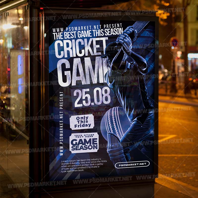 Cricket Game PSD Template Flyer is a simply modern flyer design by PSDmarket Team to be used with Photoshop CS3 and higher. Save your time and use it for business or for your clients! This can be use for for Cricket Game, Cricket Sport, Cricket Show, Cricket Event, Cricket Party, Cricket Time, Cricket, Extreme Sport, Cricket Championships, Cricket Sport and others.