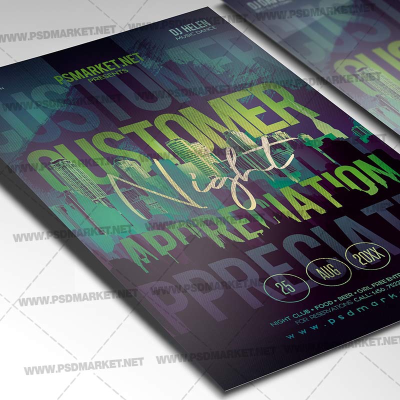 Customer Appreciation Night Flyer Template is a premium Photoshop PSD flyer / poster template designed by PSDmarket to be used with Photoshop CS4 and higher.