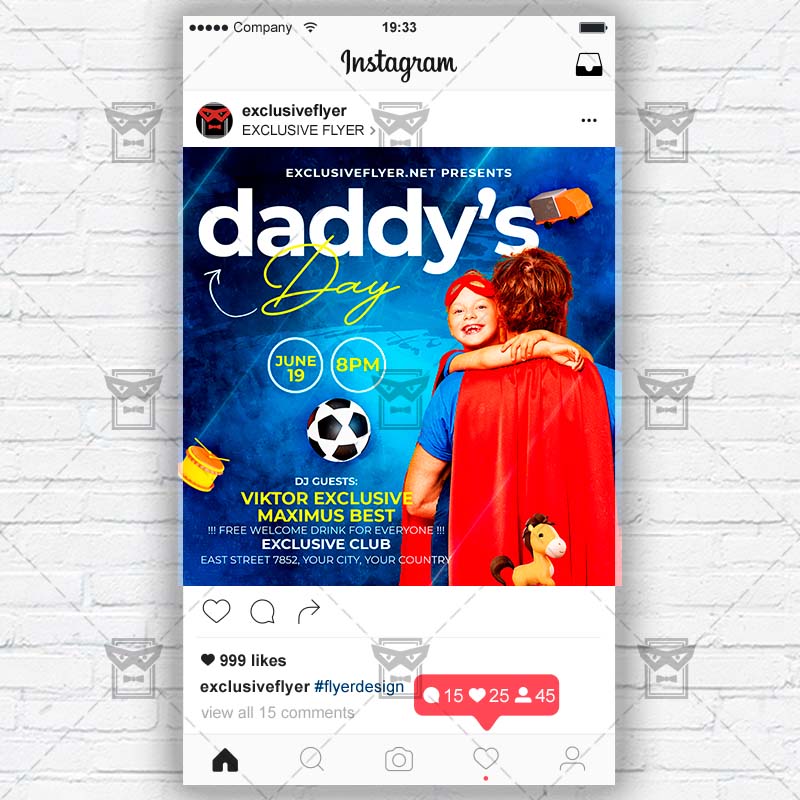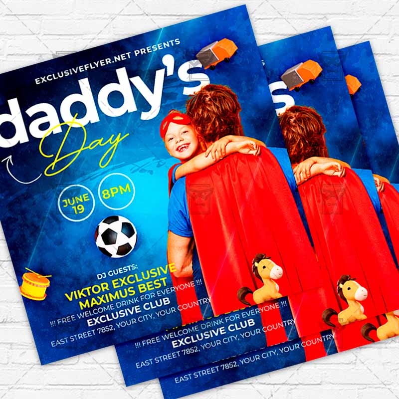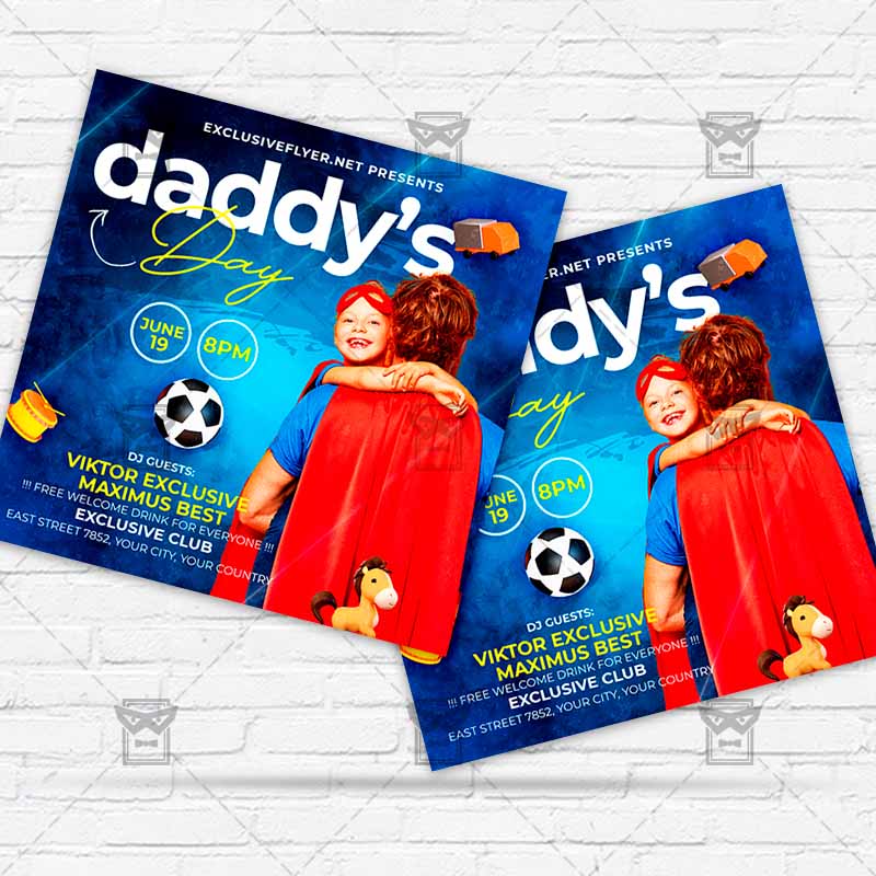 Daddy’s Day Template an exclusive PSD flyer template for Adobe Photoshop designed by our best graphic designers to facilitate your task in promoting your business. With our readymade Club flyer in psd format you can invite you customers and guest to your event or to the best Father’s Day, Best Dad Day, Fathers Day Show, Fathers Day Celebration, Fathers Day Event in their lives.