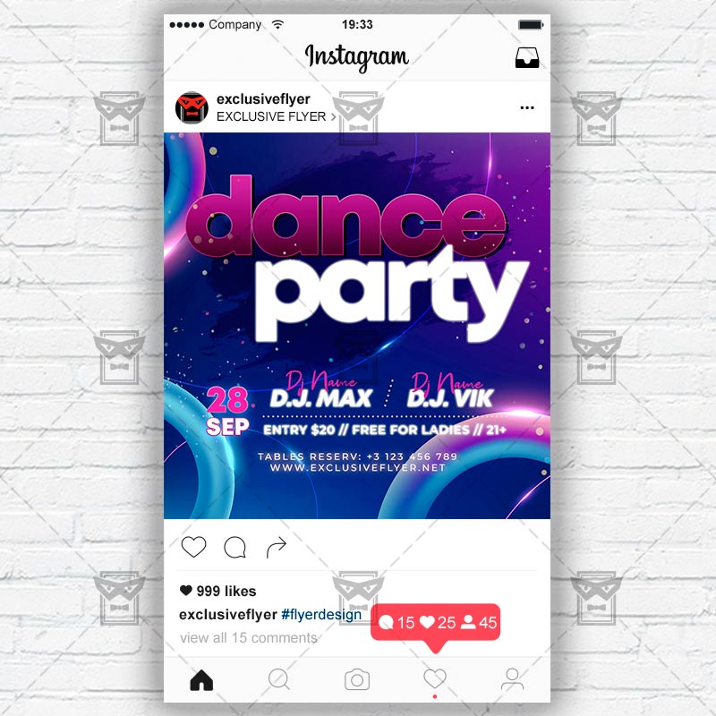 Dance Party Template an exclusive PSD flyer template for Adobe Photoshop designed by our best graphic designers to facilitate your task in promoting your business. With our readymade Club flyer in psd format you can invite you customers and guest to your event or to the best Party Club, Girls Night, Party Online, Girls Night Out Party, Live Show Night, Online Show. Online Dj Battle, Online Party On in their lives.