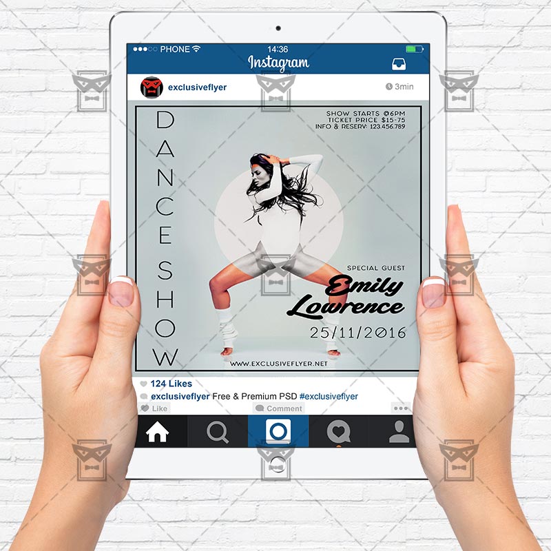 The Dance Show is the exclusive Photoshop PSD flyer template designed by ExclusiveFlyer to promote your Dance Show. This is a modern, stylish flyer and just be used for a Models Night, Dance Festival, Ballet Night etc. Dear customers! – you can also: Customize any flyers or Hire Us to create any unique product. Also, you can get unlimited access to all our templates. You can buy 1 month membership, 3 or 6 months membership or even 1 year membership plan and login on site, choose a design, click the button DOWNLOAD TEMPLATE and it’s yours. No hassle, no checkout! When you paid the template, you can find it in your personal account and of course you’ve got a message to your e-mail (maybe in spam) with link to download. Also, you can find all templates, which you buy, in your personal account! All of our flyers have a very good quality (300DPI). And it means that you just need to download one of them and make the necessary modifications such as replace the elements or choose the colors and start to invite your guests! You can order from us design of Banner Ad, Bi-Fold Brochure, Tri-Fold Brochure, Business Card, Logo, One-Sided Flyer, Two-sided Flyer or Postcard. All you need is to checkout and write us all information on our e-mail or skype. (order now). There are a lot of free flyer templates, free business card templates on our site! Also there are a lot of categories of flyers such as club flyers, seasonal flyers, sport flyers and also business flyers. You have a great choise on our site, so good luck! Don’t forget to follow our Facebook community, our page on Twitter, on Pinterest and on Tumblr and leave comments, cause we work for you! PSD is set up in 1275×1875 dimension (4” x 6” with 0,25” bleed). The PSD file is very well organised, with color coded groups and layers named appropriately. Remember, all stock images of models and other people used only for demonstration all charms of the flyer and don’t included in the download!