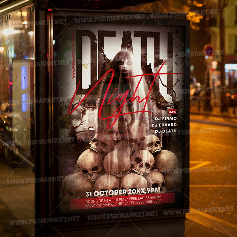 Death Night Event Flyer is a simply modern flyer design by PSDmarket Team to be used with Photoshop CS3 and higher. Save your time and use it for business or for your clients! This can be use for Death Night Event, Death Night, Death Party, Halloween Party Night, Halloween Event, Dark Night, Gothic Halloween Rock Party, Halloween Rock Party, Halloween Night, Halloween Saturday, Halloween Kids, Happy Halloween, Halloween, Disney Halloween, Halloween Day, Halloween Fest, Halloween Carnival, Halloween Night, Happy Halloween, Halloween Celebration or Halloween Festival and others.