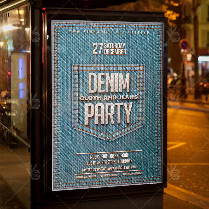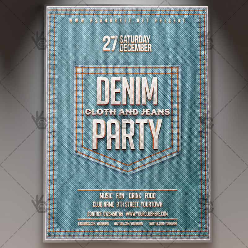 Denim Jeans Party is a simply modern flyer design by PSDmarket Team to be used with Photoshop CS3 and higher. Save your time and use it for business or for your clients! This can be use for Jeans Party, Jeans Night, Denim Cloth Show, Denim Party, Denim Night, Denim Jeans Night and others.