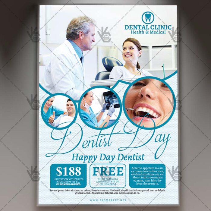 Dentist Day is a simply modern flyer design by PSDmarket Team to be used with Photoshop CS3 and higher. Save your time and use it for business or for your clients! This can be use for Dental Clinic, Medical Clinic, Hospital, Health Care Centres, Veterinary Clinic and others.