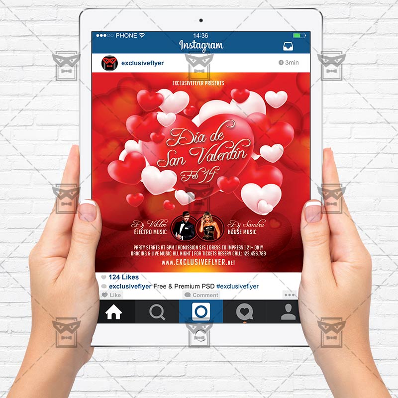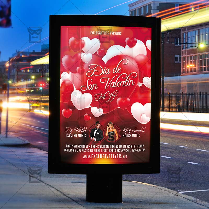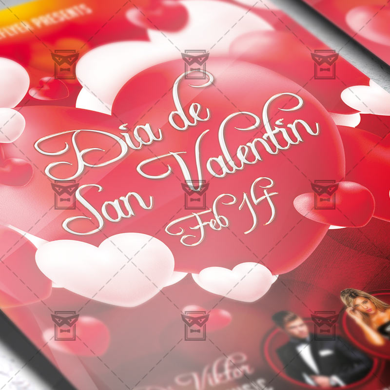 The Dia de San Valentin is the exclusive Photoshop PSD flyer template designed by ExclusiveFlyer to promote your Dia de San Valentin. This is a modern, stylish flyer and just be used for a Valentine’s Day Party, Cupid Night, Hearts Party etc. Dear customers! – you can also: Customize any flyers or Hire Us to create any unique product. Also, you can get unlimited access to all our templates. You can buy 1 month membership, 3 or 6 months membership or even 1 year membership plan and login on site, choose a design, click the button DOWNLOAD TEMPLATE and it’s yours. No hassle, no checkout! When you paid the template, you can find it in your personal account and of course you’ve got a message to your e-mail (maybe in spam) with link to download. Also, you can find all templates, which you buy, in your personal account! All of our flyers have a very good quality (300DPI). And it means that you just need to download one of them and make the necessary modifications such as replace the elements or choose the colors and start to invite your guests! You can order from us design of Banner Ad, Bi-Fold Brochure, Tri-Fold Brochure, Business Card, Logo, One-Sided Flyer, Two-sided Flyer or Postcard. All you need is to checkout and write us all information on our e-mail or skype. (order now). There are a lot of free flyer templates, free business card templates on our site! Also there are a lot of categories of flyers such as club flyers, seasonal flyers, sport flyers and also business flyers. You have a great choise on our site, so good luck! Don’t forget to follow our Facebook community, our page on Twitter, on Pinterest and on Tumblr and leave comments, cause we work for you! PSD is set up in 1275×1875 dimension (4” x 6” with 0,25” bleed). The PSD file is very well organised, with color coded groups and layers named appropriately. Remember, all stock images of models and other people used only for demonstration all charms of the flyer and don’t included in the download!