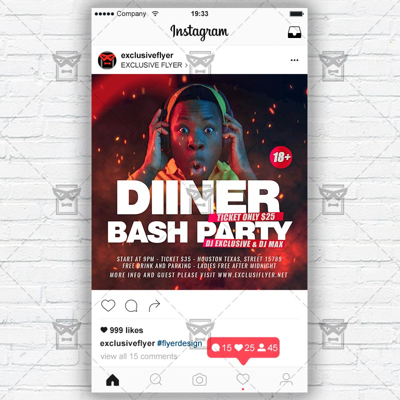 Dinner Bash Template an exclusive PSD flyer template for Adobe Photoshop designed by our best graphic designers to facilitate your task in promoting your business. With our readymade Club flyer in psd format you can invite you customers and guest to your event or to the best Party Club, Girls Night, Party Online, Girls Night Out Party, Live Show Night, Online Show. Online Dj Battle, Online Party On in their lives.