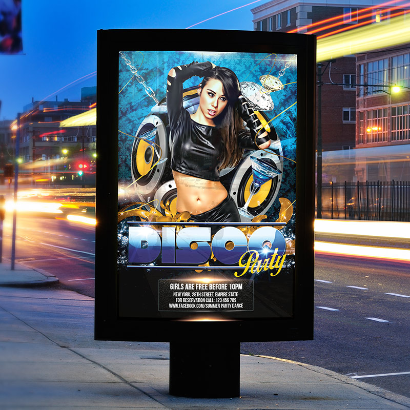 The Disco Party is the exclusive Photoshop PSD flyer template designed by ExclusiveFlyer to promote your Disco Party. This is a modern, stylish flyer and just be used for a Disco Party or Disco Night. Dear customers! – you can also: Customize any flyers or Hire Us to create any unique product. Also, you can get unlimited access to all our templates. You can buy 1 month membership, 3 or 6 months membership or even 1 year membership plan and login on site, choose a design, click the button DOWNLOAD TEMPLATE and it’s yours. No hassle, no checkout! When you paid the template, you can find it in your personal account and of course you’ve got a message to your e-mail (maybe in spam) with link to download. Also, you can find all templates, which you buy, in your personal account! All of our flyers have a very good quality (300DPI). And it means that you just need to download one of them and make the necessary modifications such as replace the elements or choose the colors and start to invite your guests! You can order from us design of Banner Ad, Bi-Fold Brochure, Tri-Fold Brochure, Business Card, Logo, One-Sided Flyer, Two-sided Flyer or Postcard. All you need is to checkout and write us all information on our e-mail or skype. (order now). There are a lot of free flyer templates, free business card templates on our site! Also there are a lot of categories of flyers such as club flyers, seasonal flyers, sport flyers and also business flyers. You have a great choise on our site, so good luck! Don’t forget to follow our Facebook community, our page on Twitter, on Pinterest and on Tumblr and leave comments, cause we work for you! PSD is set up in 1275×1875 dimension (4″×6″ with 0,25″ bleed). The PSD file is very well organised, with color coded groups and layers named appropriately. Remember, all stock images of models and other people used only for demonstration all charms of the flyer and don’t included in the download!