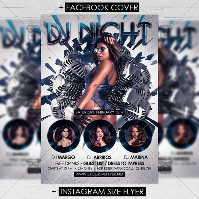 The Dj Night is the exclusive Photoshop PSD flyer template designed by ExclusiveFlyer to promote your Dj Night. This is a modern, stylish flyer and just be used for a Dj Night Party, Dj Battle Night, Special Dj Guest Night etc. Dear customers! – you can also: Customize any flyers or Hire Us to create any unique product. Also, you can get unlimited access to all our templates. You can buy 1 month membership, 3 or 6 months membership or even 1 year membership plan and login on site, choose a design, click the button DOWNLOAD TEMPLATE and it’s yours. No hassle, no checkout! When you paid the template, you can find it in your personal account and of course you’ve got a message to your e-mail (maybe in spam) with link to download. Also, you can find all templates, which you buy, in your personal account! All of our flyers have a very good quality (300DPI). And it means that you just need to download one of them and make the necessary modifications such as replace the elements or choose the colors and start to invite your guests! You can order from us design of Banner Ad, Bi-Fold Brochure, Tri-Fold Brochure, Business Card, Logo, One-Sided Flyer, Two-sided Flyer or Postcard. All you need is to checkout and write us all information on our e-mail or skype. (order now). There are a lot of free flyer templates, free business card templates on our site! Also there are a lot of categories of flyers such as club flyers, seasonal flyers, sport flyers and also business flyers. You have a great choise on our site, so good luck! Don’t forget to follow our Facebook community, our page on Twitter, on Pinterest and on Tumblr and leave comments, cause we work for you! PSD is set up in 1275×1875 dimension (4” x 6” with 0,25” bleed). The PSD file is very well organised, with color coded groups and layers named appropriately. Remember, all stock images of models and other people used only for demonstration all charms of the flyer and don’t included in the download!