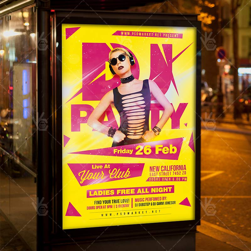 DJ Party is a simply modern flyer design by PSDmarket Team to be used with Photoshop CS3 and higher. Save your time and use it for business or for your clients! This can be use for International Dj Day, Dj Battle Night, DJ Festival, Dj Club Party and others.