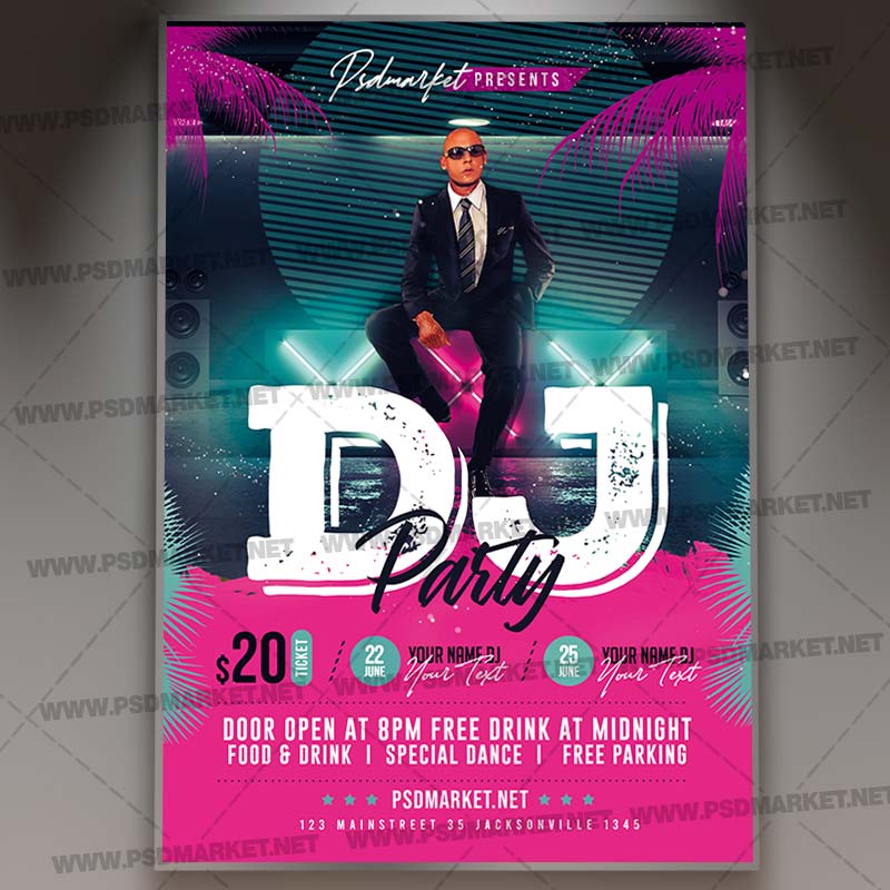 Dj Party Event Template Flyer PSD is a simply modern flyer design by PSDmarket Team to be used with Adobe Photoshop CS3 and higher. Save your time and use it for business or for Dj Party Event, your clients! This can be use for Dj Sound, Dj Club Event, Dj Party, Dj Night, Dj Club Party, Club Party, Online Party, Online Stream Party, Live Party, House Party, Home Night, Party Night, Rave Club Party, Rave Dj, Dj Battle and others.