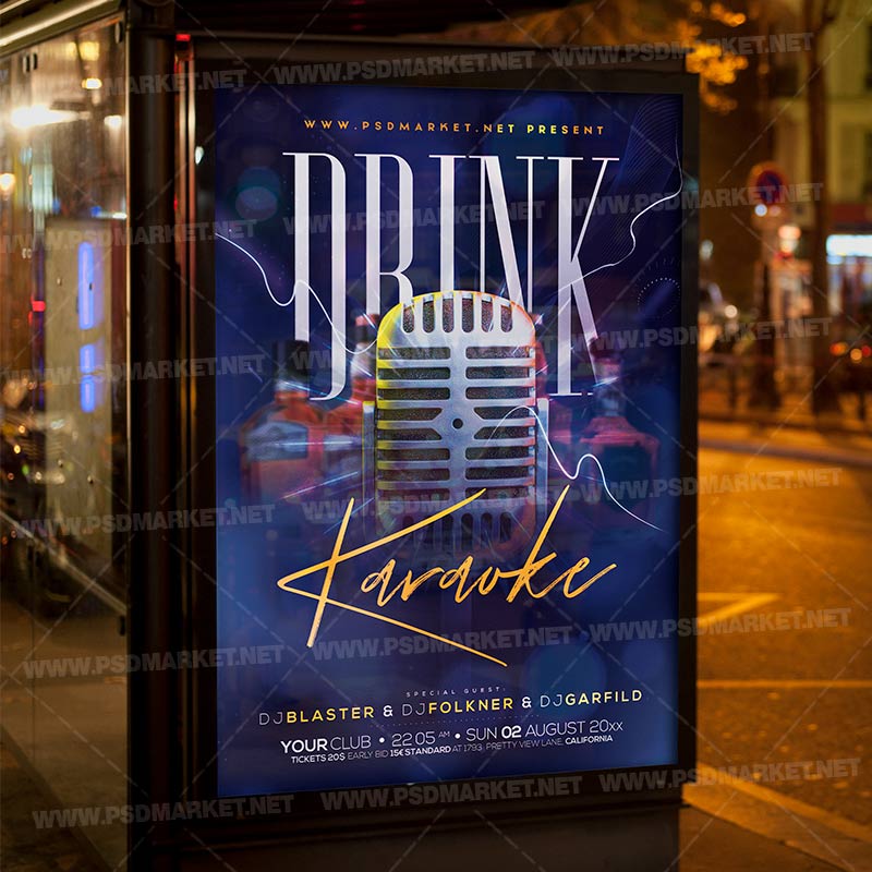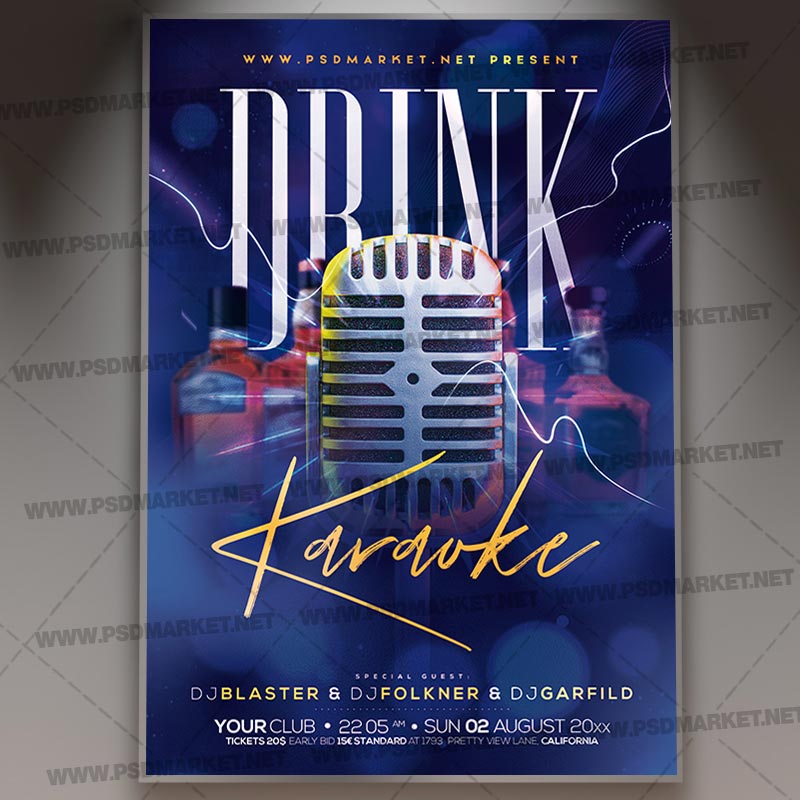 Drink Karaoke Flyer is a simply modern flyer design by PSDmarket Team to be used with Photoshop CS3 and higher. Save your time and use it for business or for your clients! This can be use for Drink Karaoke, Karaoke Wednesdays, Karaoke, Karaoke Party, Karaoke Celebration, Karaoke Night, Karaoke Nights, Karaoke Event, Retro Karaoke Party, Birthday Party, Birthday Night or Karaoke Birthday Night and others.